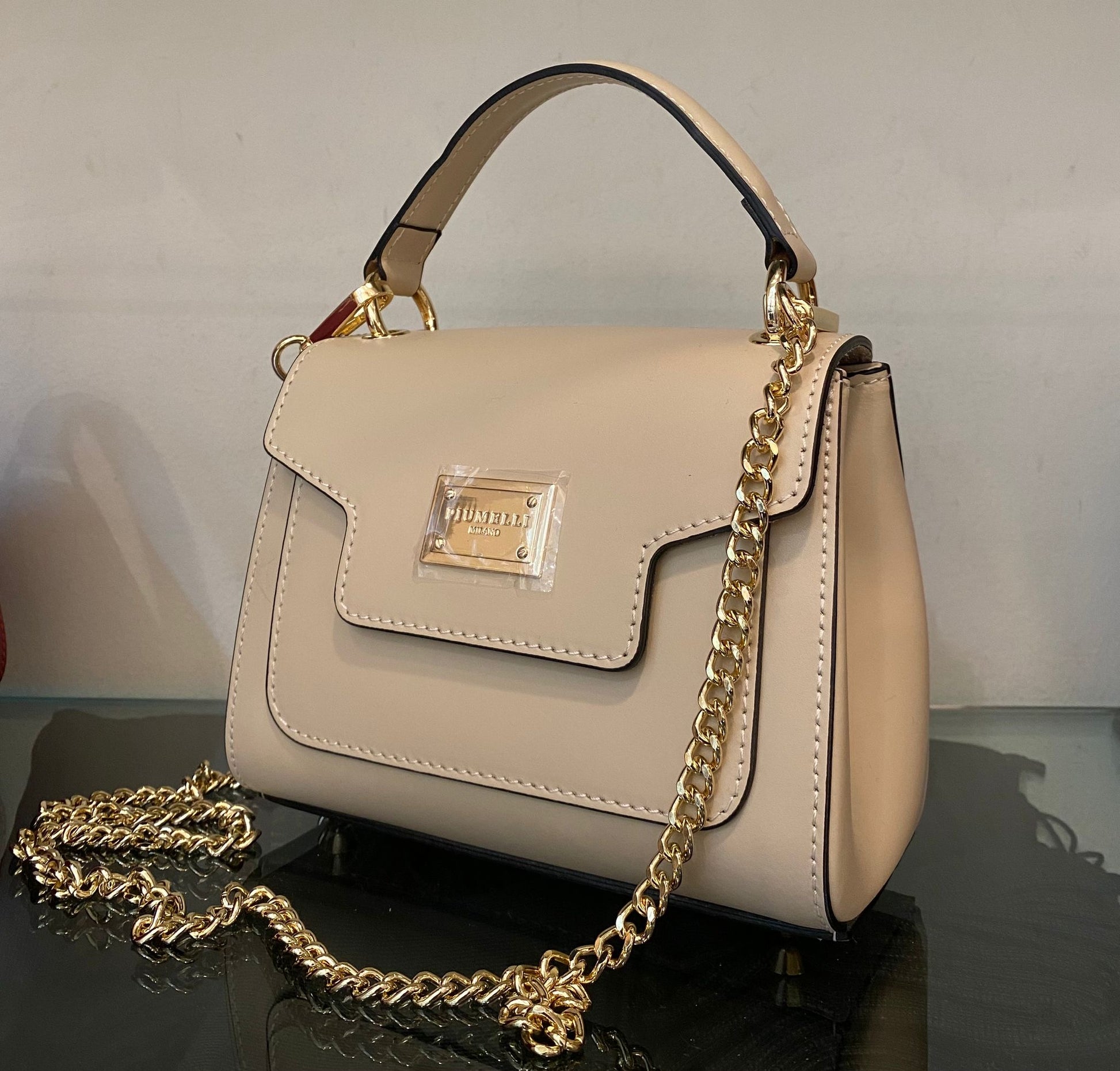 Cyclamen is a small bag made of calfskin, equipped with a removable chain shoulder strap on the sides. The model is part of the Piumelli Permanent Collection, classic and simple lines suitable for all your look