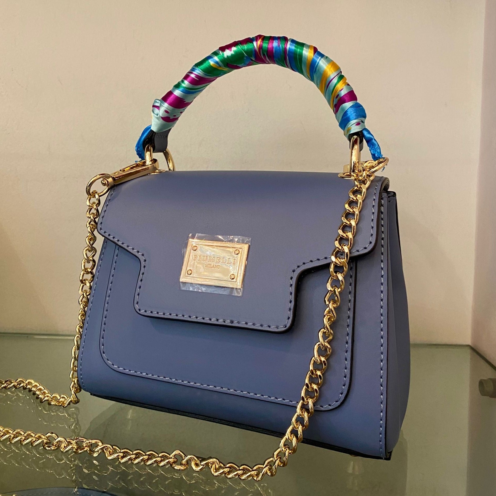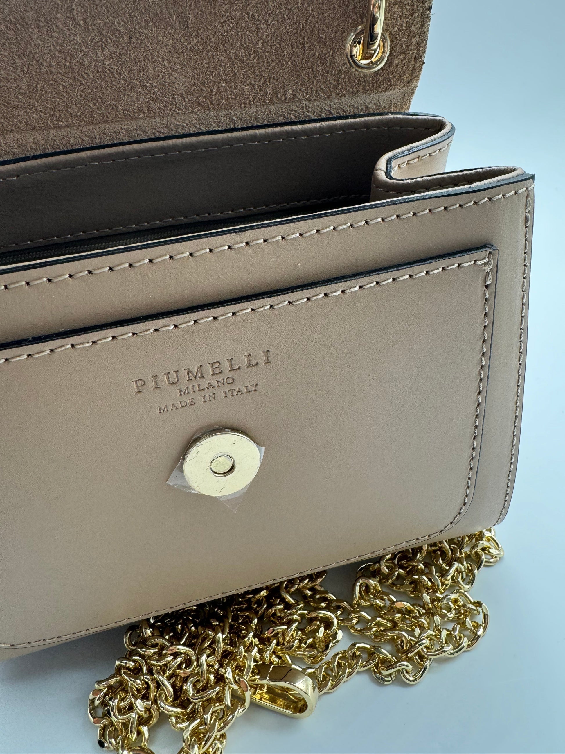 Cyclamen is a small bag made of calfskin, equipped with a removable chain shoulder strap on the sides. The model is part of the Piumelli Permanent Collection, classic and simple lines suitable for all your look
