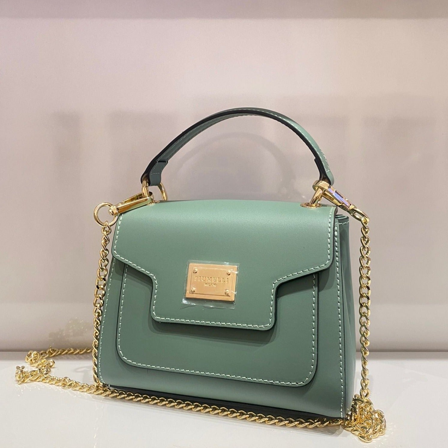 Cyclamen is a small bag made of calfskin, equipped with a removable chain shoulder strap on the sides. The model is part of the Piumelli Permanent Collection, classic and simple lines suitable for all your look