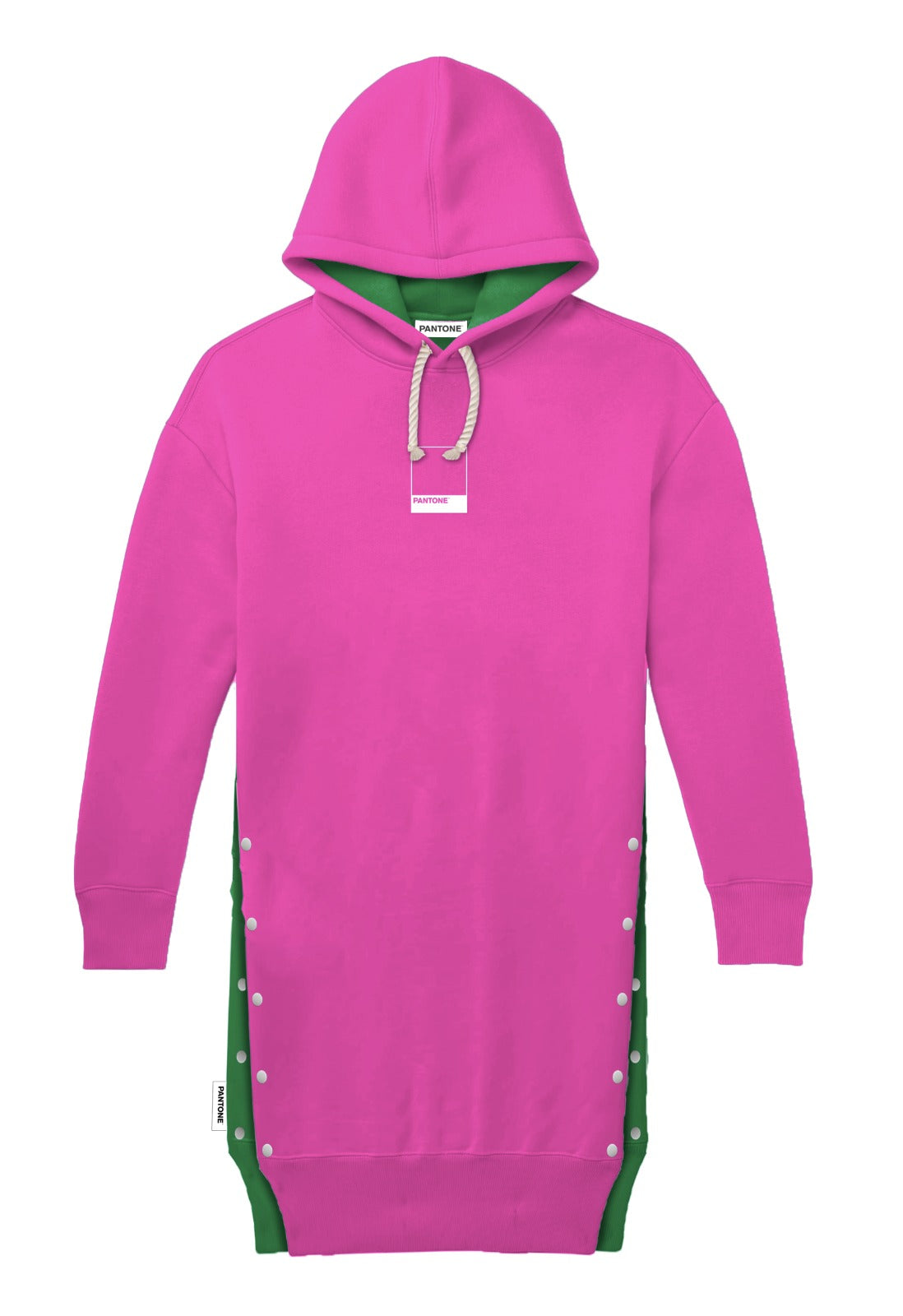 PANTONE - FunMix Collection 純棉拼色索繩連帽衛衣裙 (桃紅/綠)