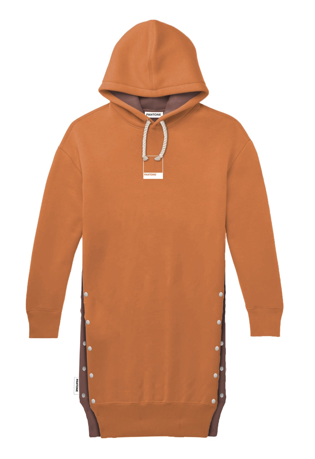 PANTONE - FunMix Collection 純棉拼色索繩連帽衛衣裙 (橙/啡)